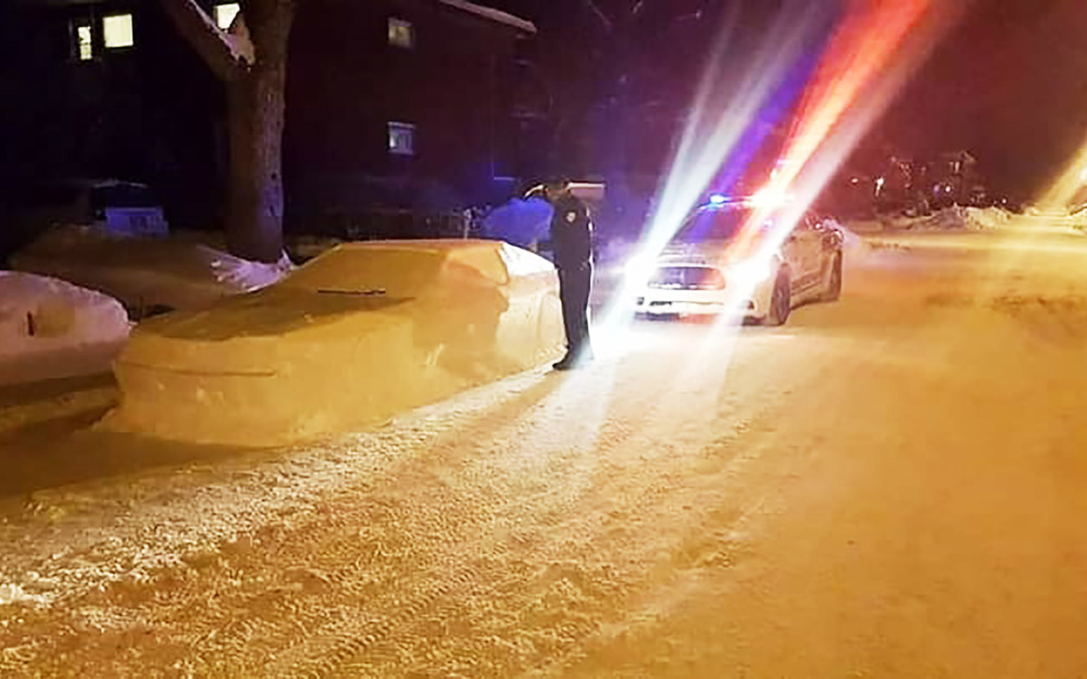 Житель канадского Монреаля решил подшутить над коммунальными службами, вылепив на проезжей части автомобиль из снега. Но машиной заинтересовалась полиция.